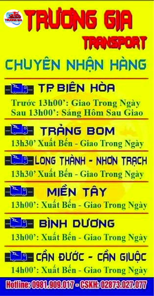 Chành xe TRƯƠNG GIA TRANSPORT xin trân trọng thông báo đến quý khách thời...